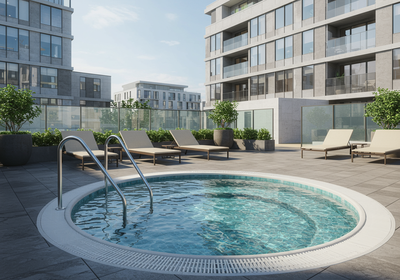 What luxury building would be complete without a jacuzzi? Pina Coladas are a must during the summer.
